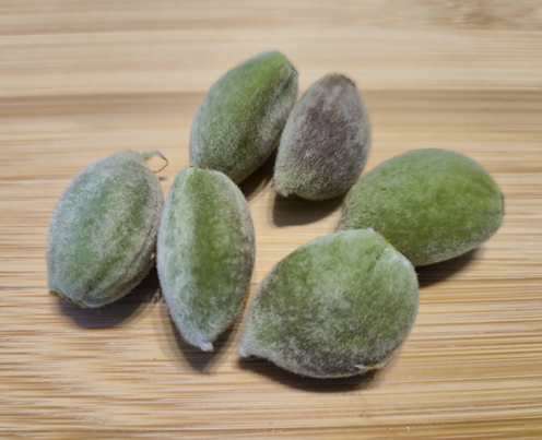 ! Attention, à la différence des amandes fraîches récoltées en Juin, celles-ci sont “en lait”, c’est à dire que l’amandon n’est pas encore formé !